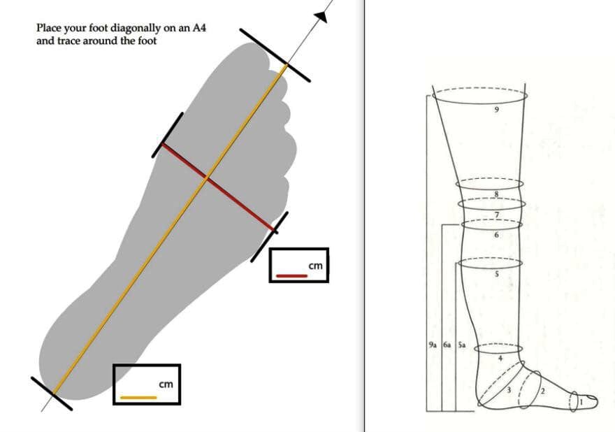 3. Heel – heel circumference measured all the way around the base of the heel and where the foot bends